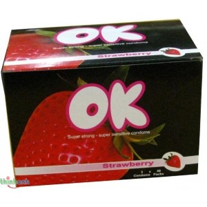 Bao cao su ok mùi hương dâu mang đến cho bạn cảm giác ấm áp khi quan hệ , bao cao su ok với hương thơm lan tỏa tạo cho bạn thích thú hơn